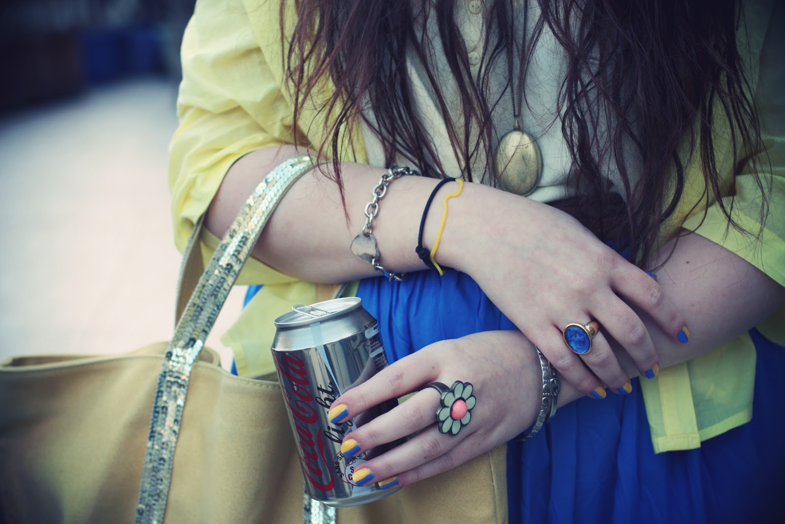 Non ce n’est pas un look à la Wiz Khalifa (black and yellow, black and yellow, black and yellow ♫ !) que je vous propose aujourd’hui, mais presque. Le soleil, la température qui monte peu à peu, les oiseaux qui chantent (tu tapes dans le cliché ma vieille) m’a donné envie de commencer à m’habiller avec des affaires d’été, afin de lui lancer un appel (oui, viens à moi). Mais avant de parler d’été, il ne faut pas oublier (arrête de vouloir brûler les étapes comme ça voyons) qu’hier nous étions quand même le premier jour du printemps, alors autant s’habiller en circonstances pour l’accueillir à bras ouverts. Voici une petite jupe, euh que dis-je, une longue jupe bleu esprit color block (oui oui tendance de l’année dernière, mais who cares!) que j’ai commandé sur Zalando. Zalando est un site de vente en ligne, qui livre très rapidement, où vous pouvez trouver de bien jolis articles. Donc go go go ! Pour ce qui est de la chanson, c’est un peu l’hymne familial entre moi et mes cousins, la chanson qui a bercé notre enfance et qu’on chantait à tue-tête (un peu en yaourt il faut l’avouer), donc j’y accorde une valeur sentimentale particulière à ce petit air qui sent bon l’été (tiens le revoilà celui-là, pas brûler les étapes j’ai dit!). Un big up aux cousins !