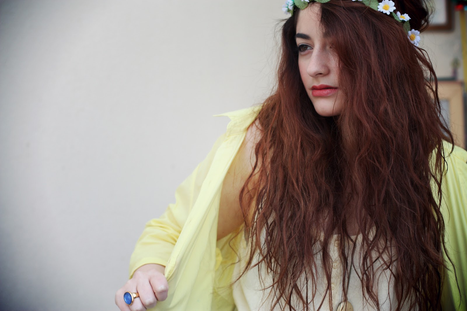 Peut être que c’est parce que je suis bretonne, mais tu me fais penser à une déesse celte, une déesse très colorée. Bon effectivement, la couronne de fleur c’est génial, je suis fan.