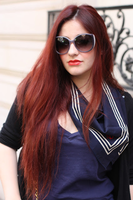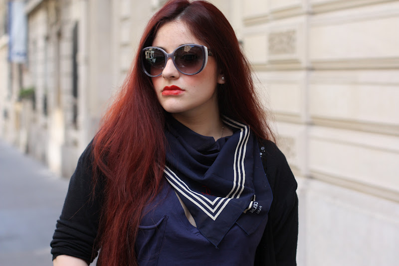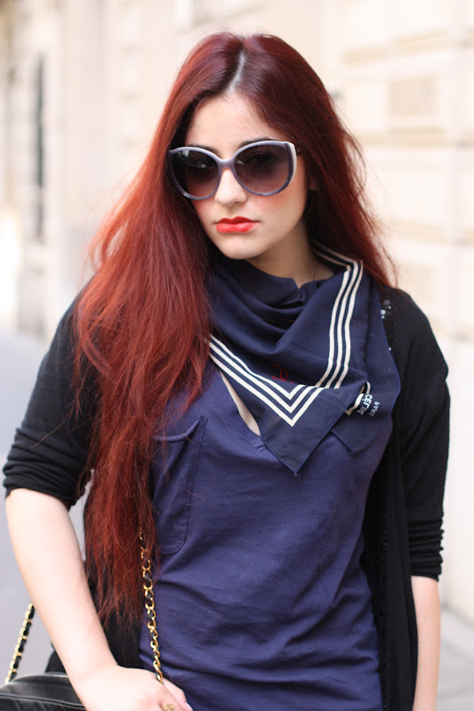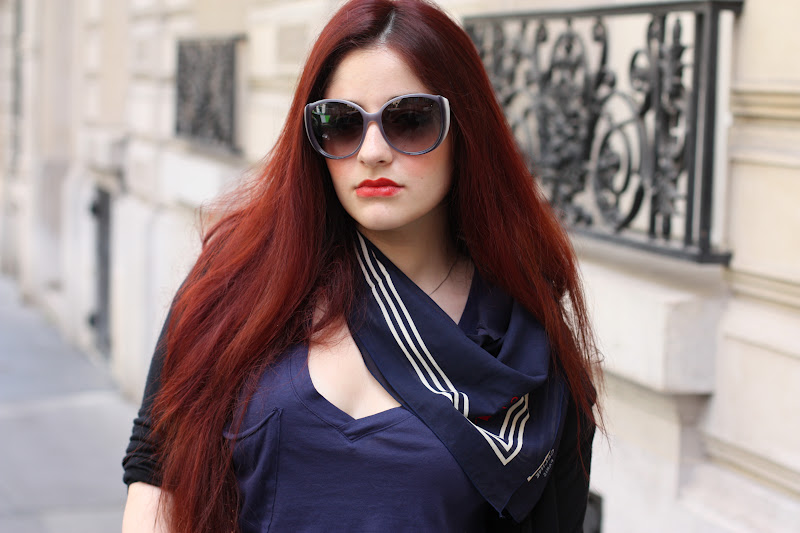 ces lunettes et le foulard font tout le look! c’est très joli :)