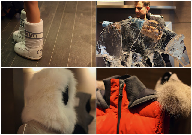 Chez Look, ambiance hivernale : les vendeuses souriantes nous servent le champagne, emmitouflées dans leur doudoune et leur moonboots. A l’entrée, un homme sculpte dans la glace un ours polaire. Freezzzzing!