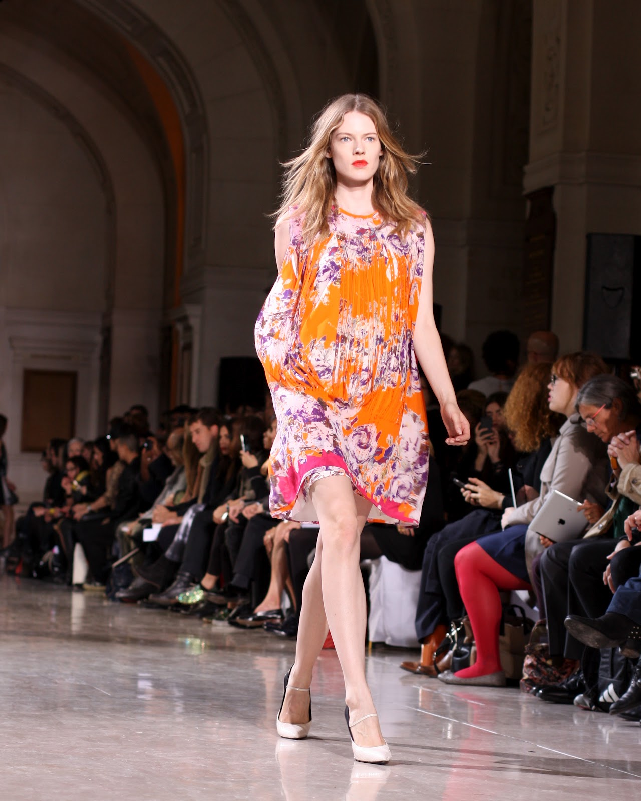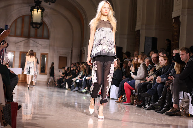 Sharon Wauchob, ancienne disciple de la Central St. Martin’s College of Arts and Design de Londres, met cette année la barre très haut. Celle qui a travaillé entre autre pour Koji Tatsuno et Louis Vuitton nous prouve que féminité et psychédélisme ne sont pas forcément des termes antinomiques. Jouant sur la transparence, les volumes, elle manipule le motif floral comme une prêtresse de la nature. Nous ne pouvons louper les sublimes détails glissés par-ci par-là sur ses créations qui, somme toute, reste du prêt-à-porter très abordable dans la vie de tous les jours. La jeune styliste irlandaise est en effet connue pour son innovation et son alternative à la mode courante. D’une exécution de chef, elle nous propose des coupes féminines alliées à des lignes déstructurées et des matières dans l’air du temps. Avec un certain sens du style, elle utilise les lacets, les plis et superpositions pour créer des formes innovantes et modernes. Retour en images sur le défilé :