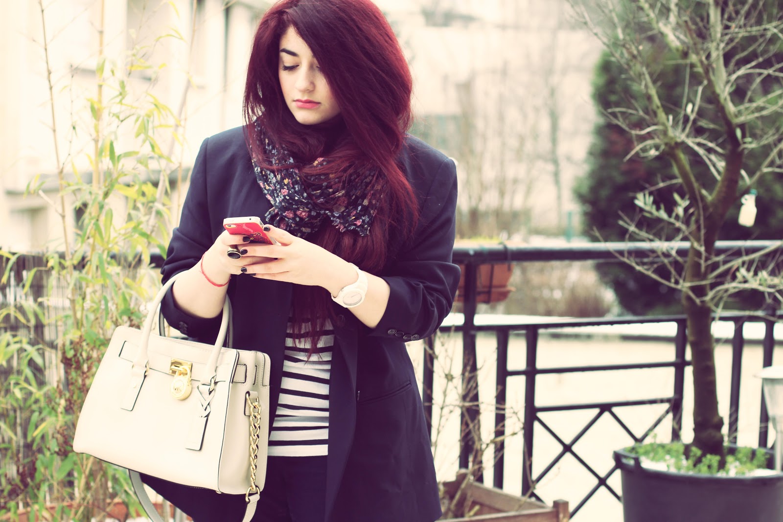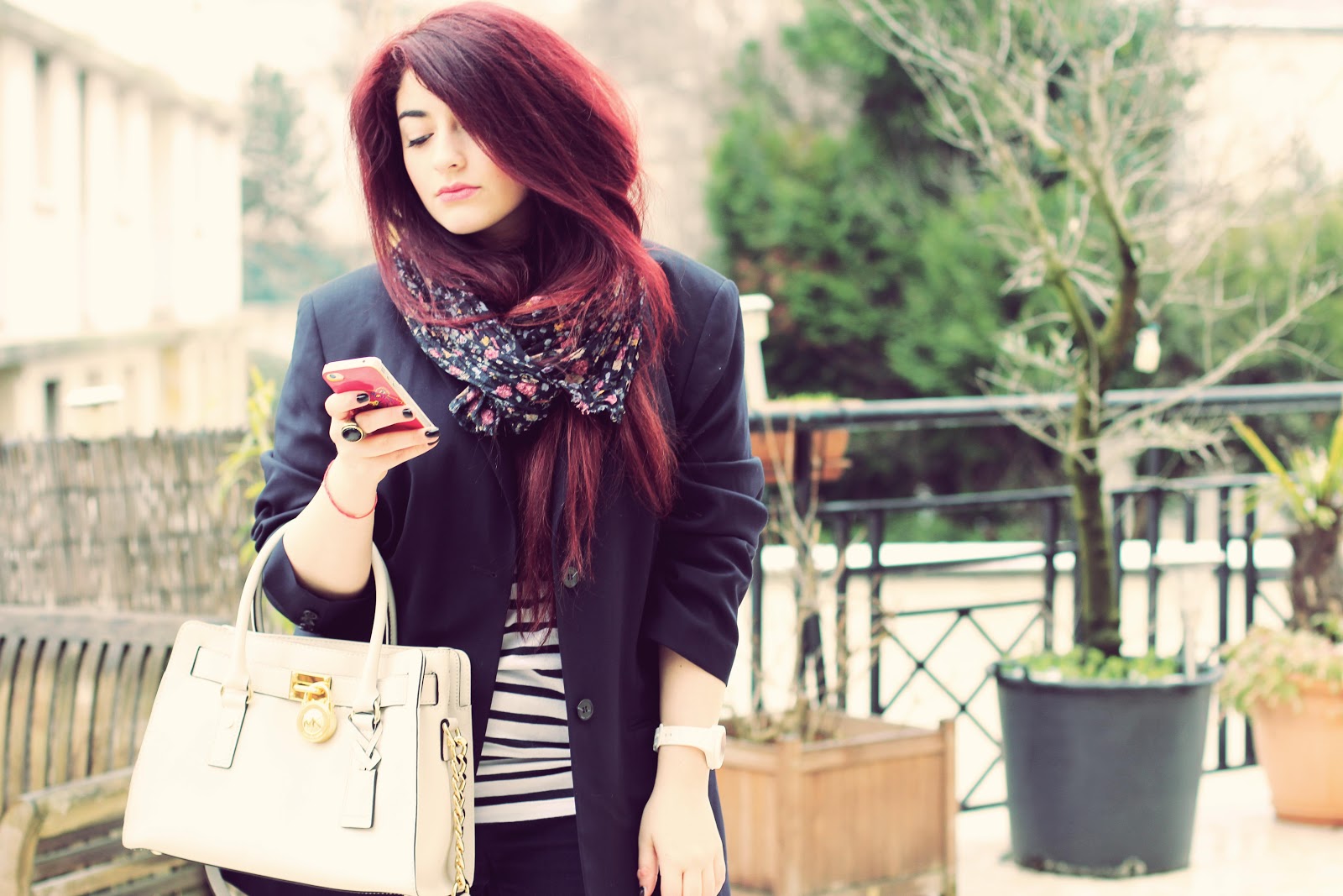 En ce moment, c’est encore l’effervescence de la Fashion Week à Paris. Et après avoir pu (malgré mon manque de temps cruel) assister à quelques défilés, j’ai pu cerner sans mal les grandes tendances à venir pour ce printemps été 2013, notamment la rayure. Et qui dit rayure, dit le grand come back de la marinière, forcément (qui commence doucement à refaire surface un peu partout dans les boutiques). J’ai donc ressorti la mienne pour un look en toute sobriété, relevé par un foulard à motif fleuri. Et vous n’avez pas pu louper ma nouvelle coque iPhone Kenzo commercialisé par Smart Addict by Modelabs, le blog des tendances mobiles qui réunit toutes les actus, accessoires et gadgets pour nos téléphones, la geek qui sommeille en moi adhère totalement au concept. Je vous laisse avec un morceau que j’écoute jusqu’au bout de mes nuits blanches depuis une semaine et dont je vous reparlerai la semaine prochaine plus en détails dans un article dédié. Muchos besos los amigos ! At this moment, it’s still the bustle of the Fashion Week in Paris. And after having (despite my cruel lack of time) attend some fashion shows, I could identify without difficulty the major future trends for spring summer 2013, including stripes. And who says stripes, says the great comeback of the sailor smock, necessarily (which slowly begins to resurface in shops). So I chose to let out mine for a sober outfit, spiced by a scarf with a floral pattern. And you don’t have to miss my new iPhone case Kenzo marketed by Smart Addict by Modelabs, the blog of trends for mobile that brings all news, gadgets and accessories for our phones, the geek who sleeping in myself fully supports the concept. I leave you with a song that I listen to the end of my sleepless nights for a week and I will talk about it next week in more detail in a dedicated section. Muchos besos los amigos!