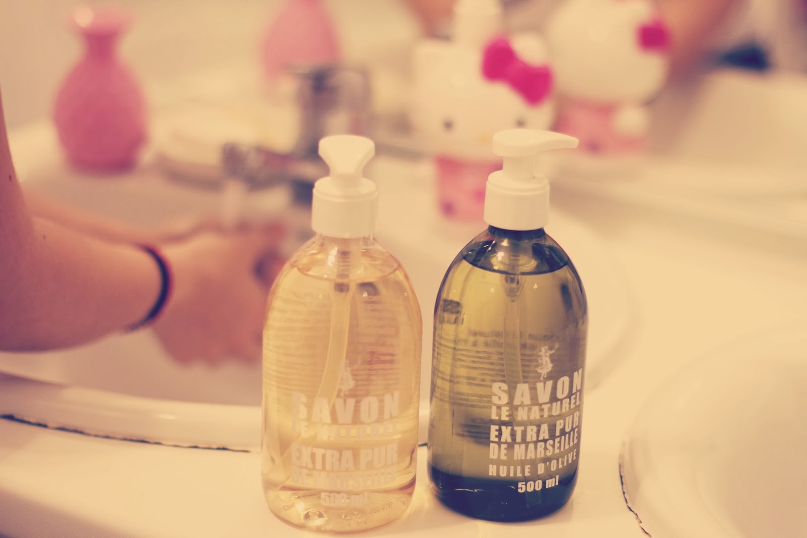 Le second produit dont je voulais vous parler relève de l’hygiène. Il s’agit des savons de la gamme Le Naturel, que j’utilise depuis plus d’un mois et qui regroupe de vastes qualités. En réalité, Le Naturel, c’est le savon de Marseille .. en format pratique! Un rêve. L’odeur, la texture et les bienfaits de l’huile végétale en instantané. Mais au lieu de devoir frotter et faire mousser son rocher de savon, le produit est liquidifié et mis dans une bouteille à pompe. Un gain de temps et toutes les vertus du savon de Marseille empaquetées, ni plus ni moins. La douceur, l’hydratation et la bonne odeur du Sud. Avant de me mettre à mon bureau pour travailler le soir, me laver les mains est un rituel/passage obligatoire. Et c’est un plaisir de travailler avec des mains douces qui sentent bon !