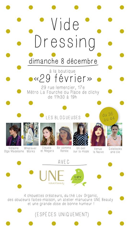 Dimanche 8 décembre 2013 – 11:30 – 19:00, 7 blogueuses vident leur dressing à petits prix auprès de 4 chouettes créateurs de la boutique 29 février !