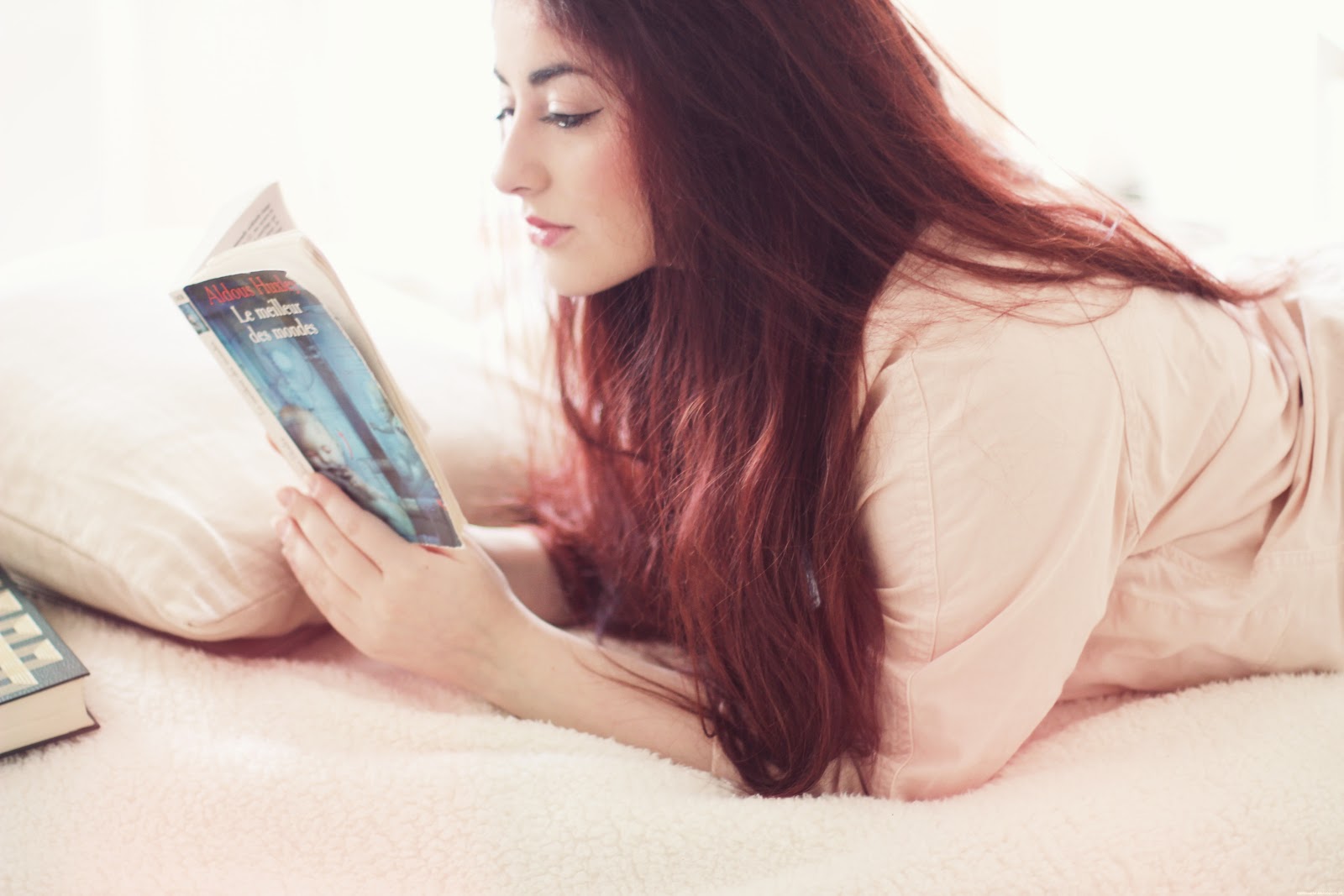 Une demie-heure avant de retrouver Morphée, je me prépare toujours une petite infusion et un bon bouquin à lire. Ça m’aide vraiment à “couper” mes pensées et réflexions, le fait de me concentrer sur la lecture d’un bouquin permet de mettre mon cerveau en veille et de m’évader. Du coup, je trouve le sommeil très rapidement !