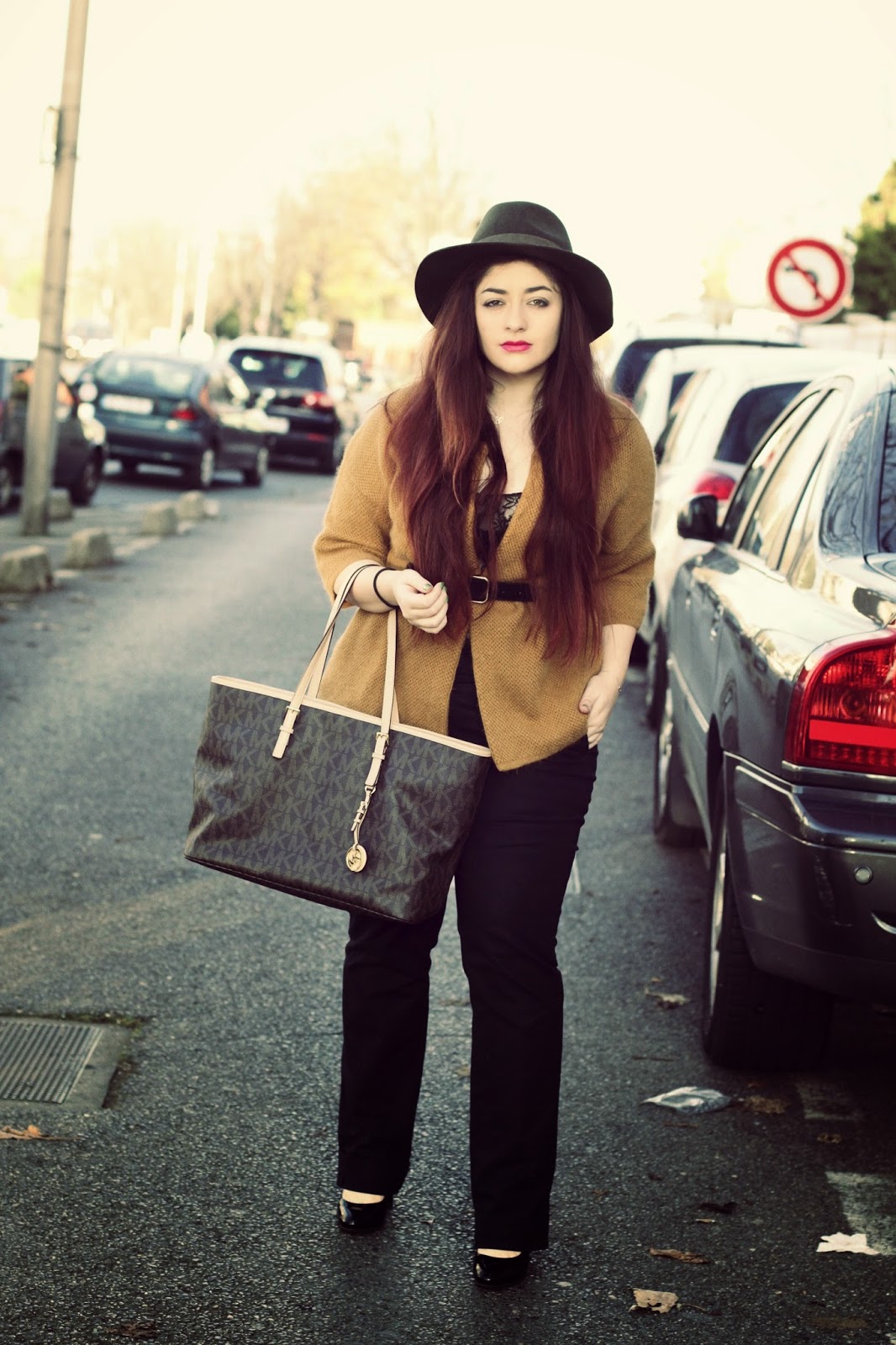 Ce gilet je l’ai repéré grâce à ma jolie Clémentine, à la shopping party See U Soon. Il confère un côté vintage au look, et .. vous savez à quel point j’adore ressembler à une mamy les fringues retro ! En dessous, j’ai glissé un body en dentelle. Et pour éviter justement un look trop old school, j’ai évité la jupe midi (bien que j’avais grandement envie de choisir cette option ci..) et j’ai penché pour un bootcut et un grand cabas Michael Kors pour moderniser l’allure. Et comme c’est bientôt Noël, aujourd’hui encore j’ai un super concours à vous proposer :