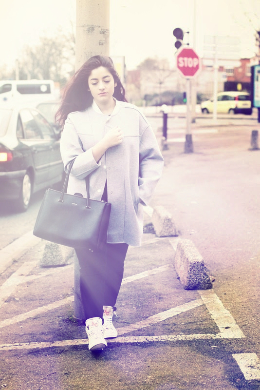 Ces photos ont été prises ce week-end, excusez donc ces yeux fatigués d’avoir trop pleuré, et cette flemme intersidéral pour me coiffer correctement. A mes pieds, je porte mes nouvelles baskets American College au motif guimauves complètement régressif, pour apporter un peu de douceur au bitume parisien. A mon bras, mon nouveau sac Furla trouvé à Deauville dans une petite boutique du centre ville. Je vous laisse et je vous dit à très vite mes douces.