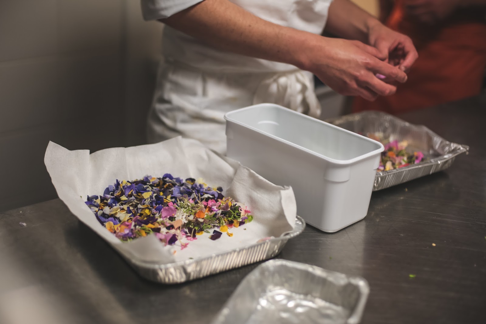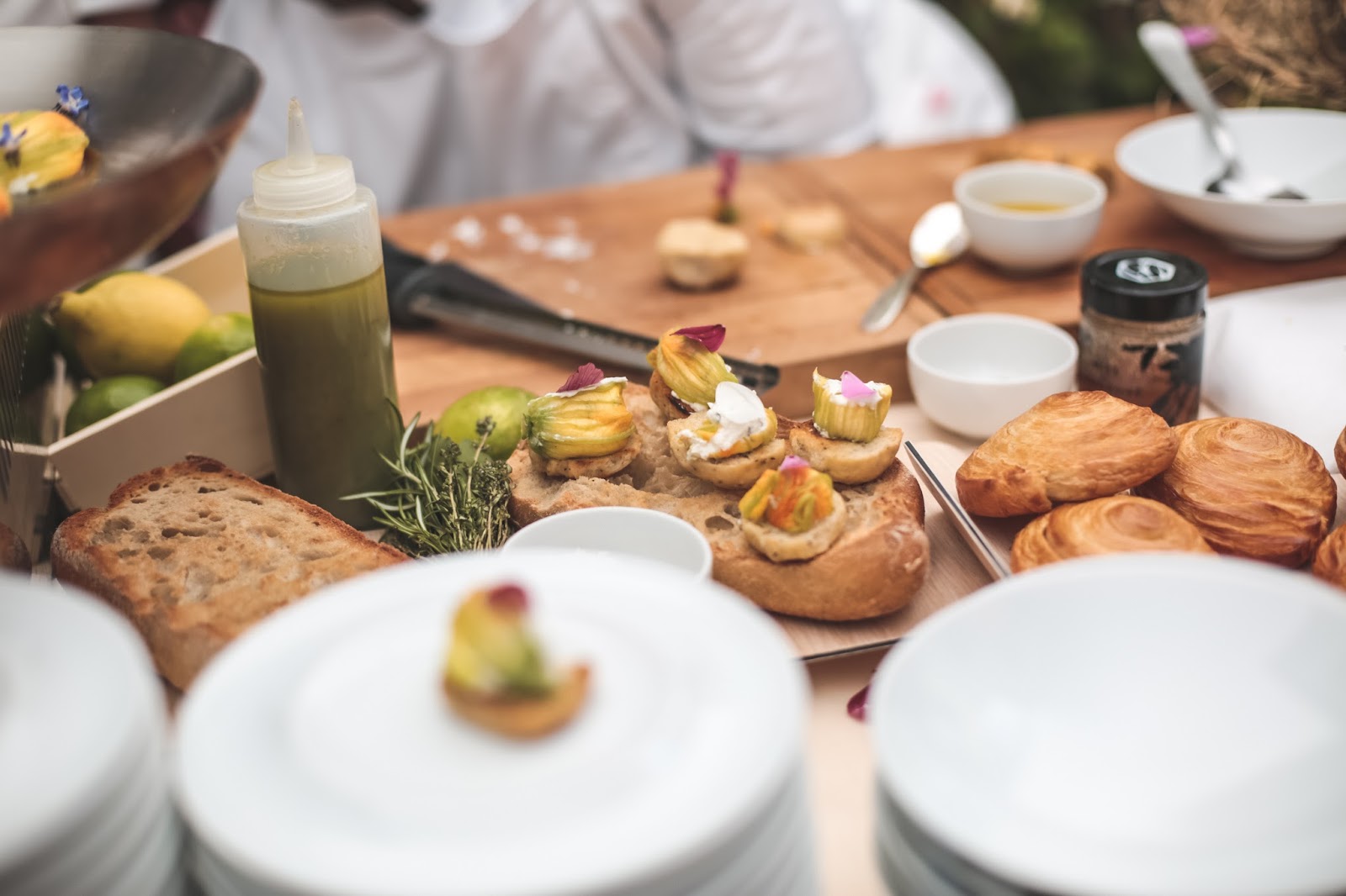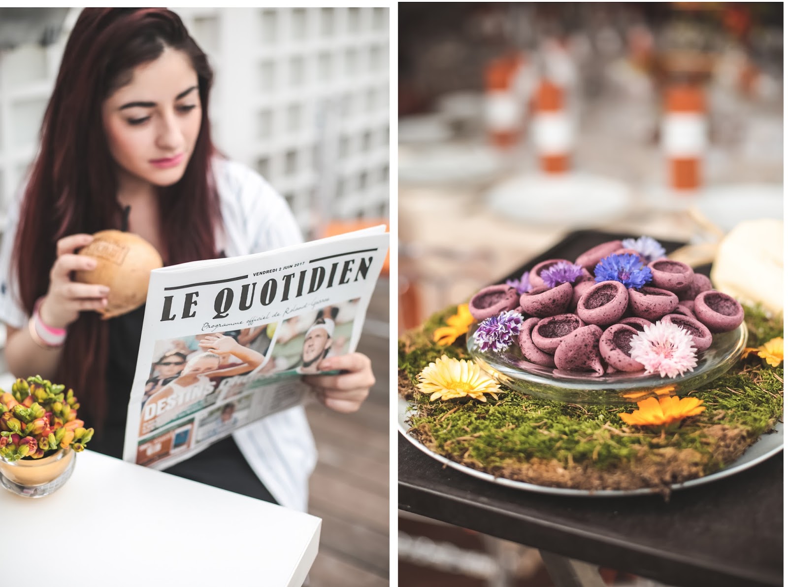 Nous nous dirigeons directement vers la loge Potel et Chabot afin de rencontrer les équipes et déguster un bon petit déjeuner ! Au menu ? Des fleurs ! Cette année, la fleur comestible est au coeur de la thématique choisie par Potel et Chabot. Ils ont donc choisi de se faire accompagné par La Ferme de Quyvie spécialisée en aromatiques et fleurs comestibles (si ça vous intéresse, l’endroit est situé dans l’Aveyron !). Tout était absolument délicieux et délicat. J’ai beaucoup aimé l’oeuf parfait fleuri, la meringue à la crème de lavande ainsi que les fleurs de courgettes au fromage frais.