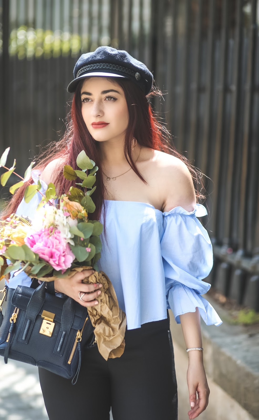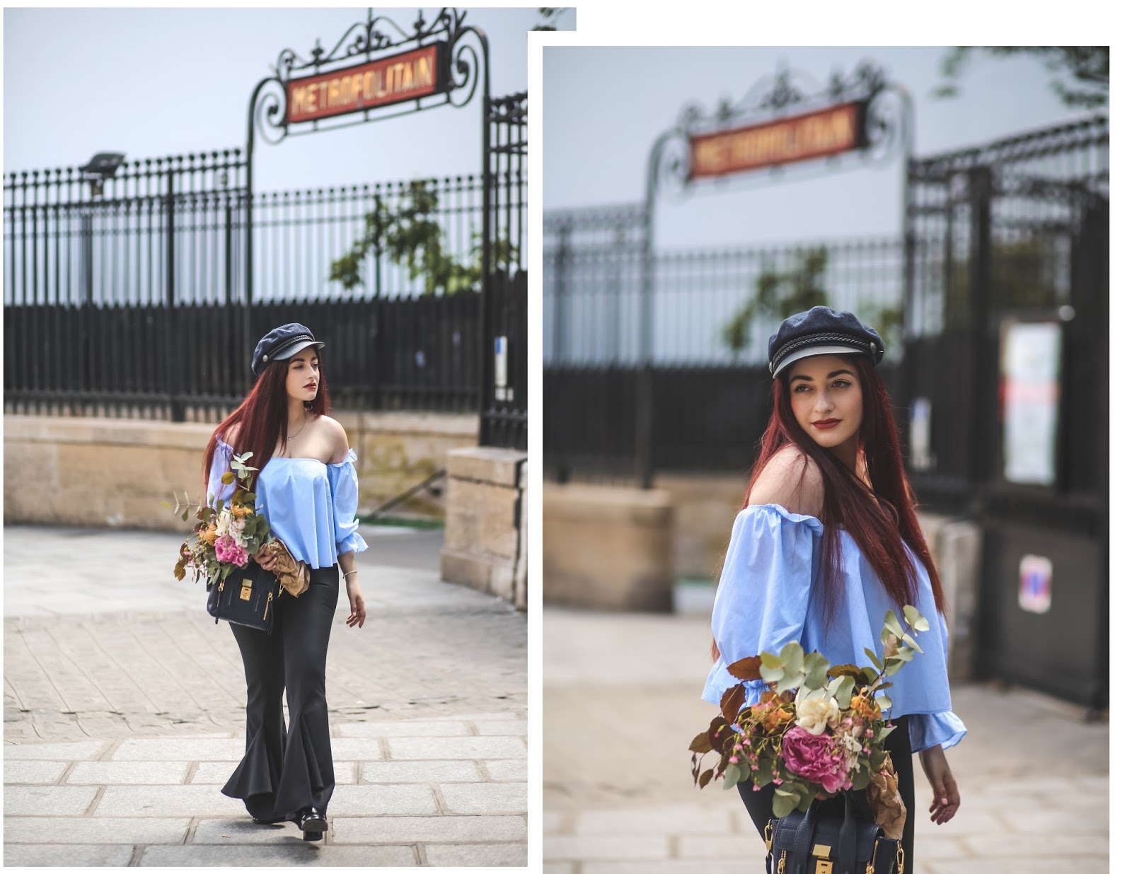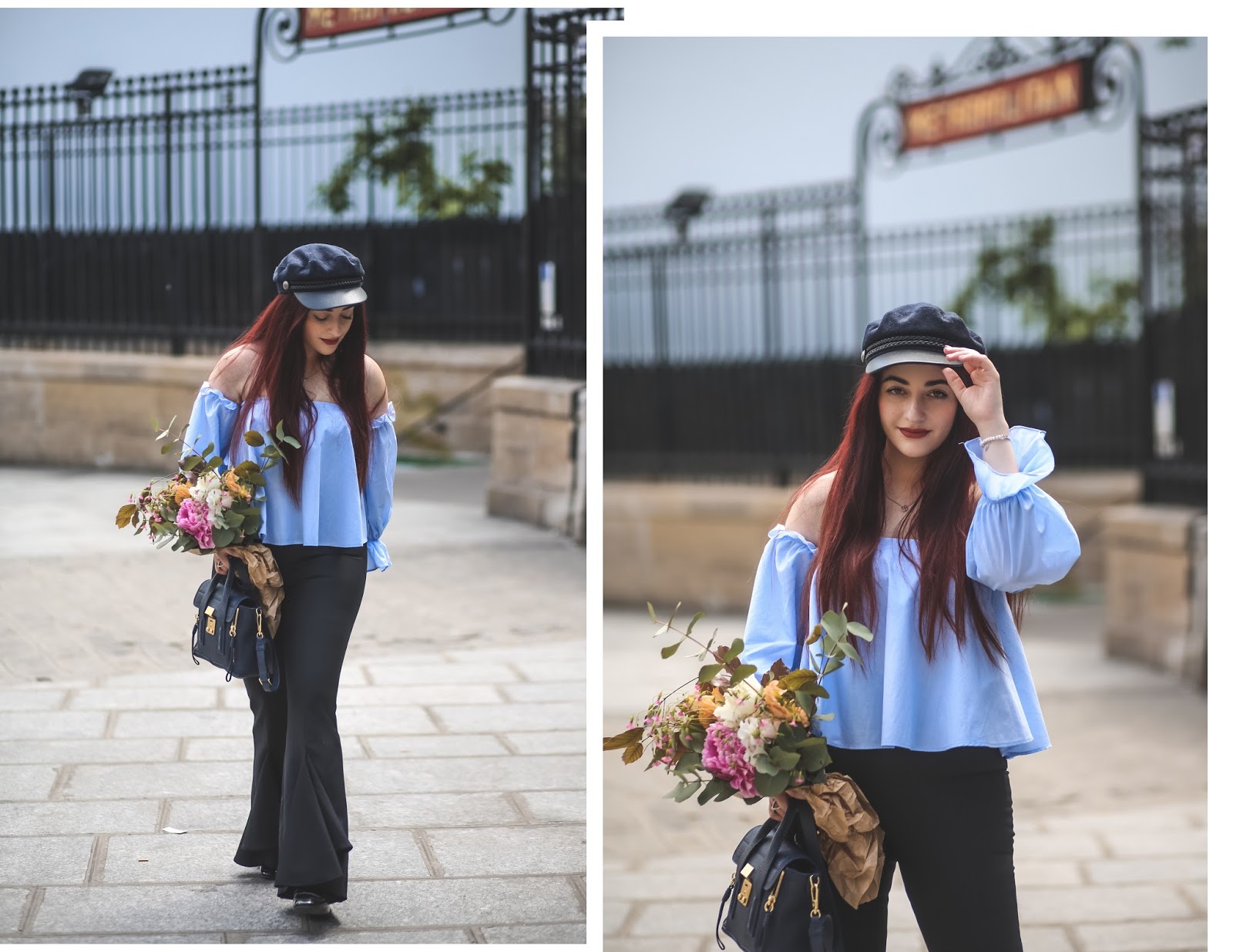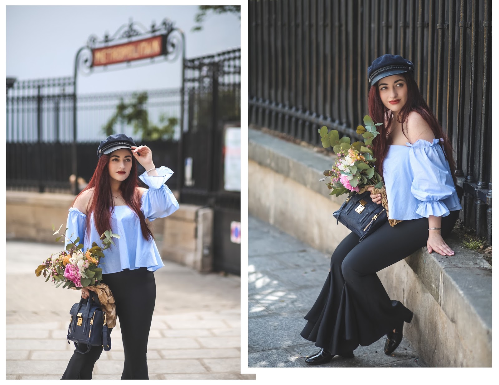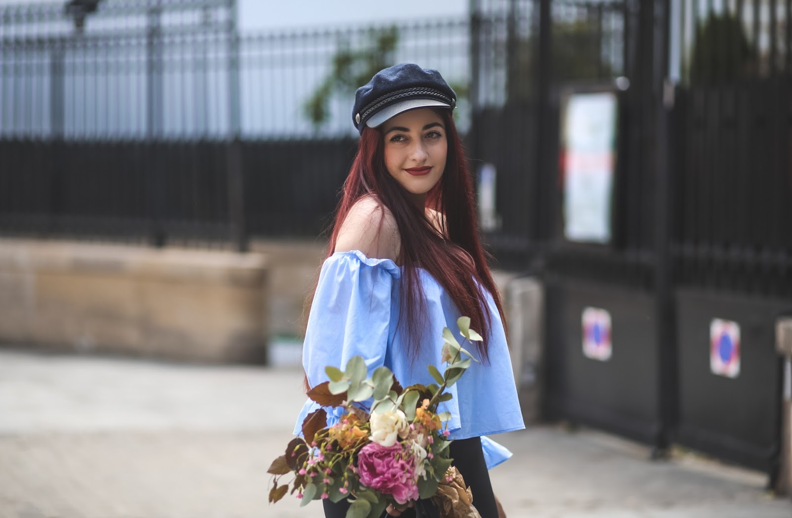 Je me souviens du jour où j’ai mis la main sur ces pièces. Dans la cabine chez ZARA, je m’étais saisi de ce sublime pantalon sirène évasé à volants qui me faisait de l’oeil depuis un bon moment – vous savez à quel point j’aime les volants et toutes ces choses vaporeuses qui virevoltent ! – puis j’enfilai avec cette petite chemise crop top off-shoulder d’un bleu bébé parfait. Je me recule, j’admire… J’étais déjà fan de ce mix and match ! Encore un mix fait au pif, découvert par le plus grand des hasards. Et au passage, merci Zara pour les pépites. Dans ma tête, j’imaginais clairement les porter ensemble, avec une jolie casquette de marin et de petits mocassins à talons. Je me retrouvais donc à shooter ce look semaine qui suivait avec ma petite Elodie pour vous montrer ça ! Et vous mes douces, que pensez-vous de ce look ? Vous aimez le pantalon sirène évasé à volants ? Je vous laisse avec ma petite musique, des bisous et passez un bon week-end ! Xx